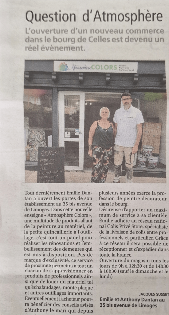 Spécialisée dans la vente de peinture et la vente de papier peint à Celles-sur-Belle à proximité de Melle et Niort, ATMOSPHÈRE DÉCO vous fait découvrir sa large gamme de produits.